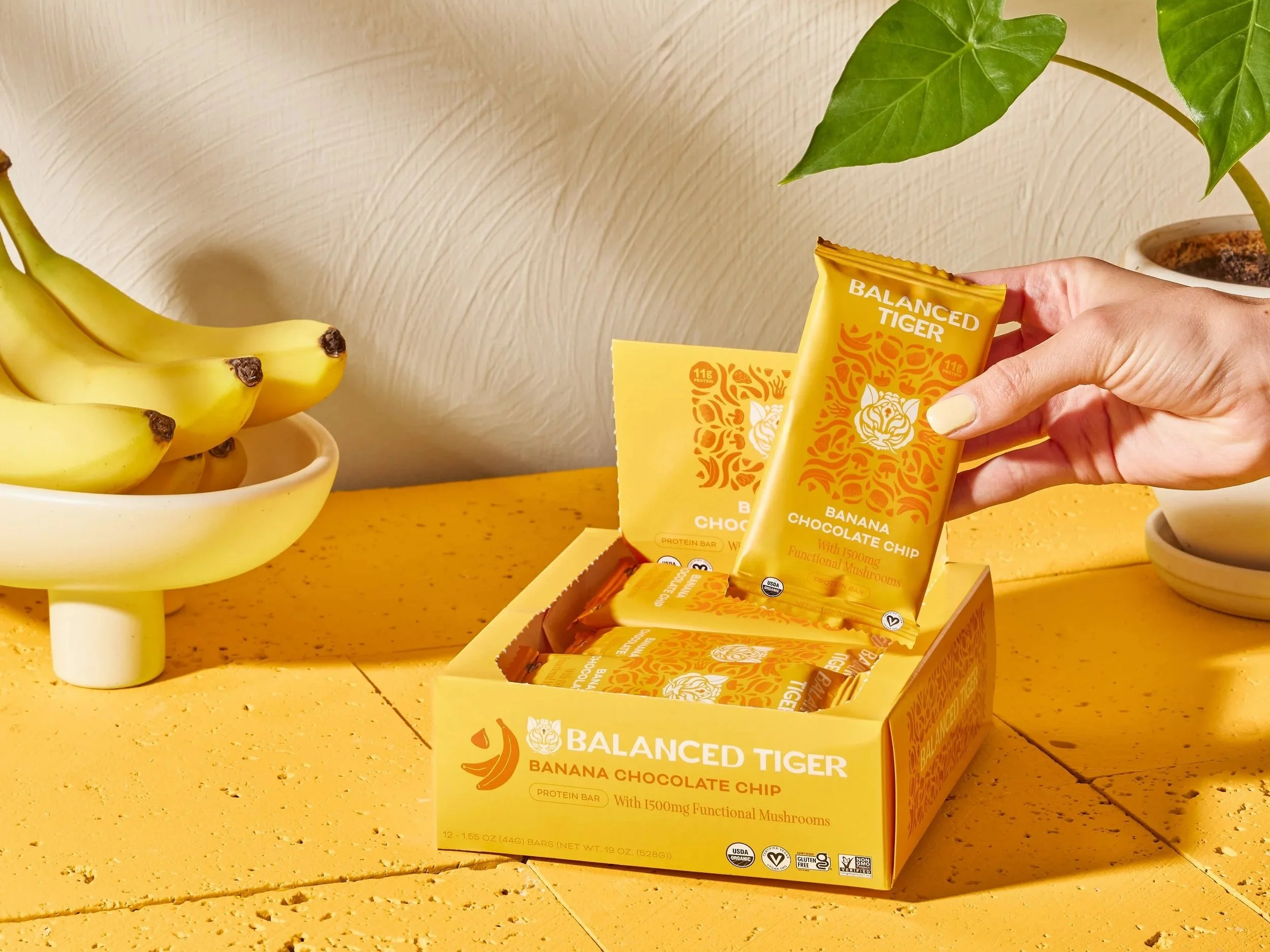Get balanced, get going. Balanced Tiger - vegan protein bars with functional mushrooms. With 190 nutrient-dense calories, 11g plant protein, & 7g natural sugars. A balanced & realistic approach to healthy & purposeful eating.